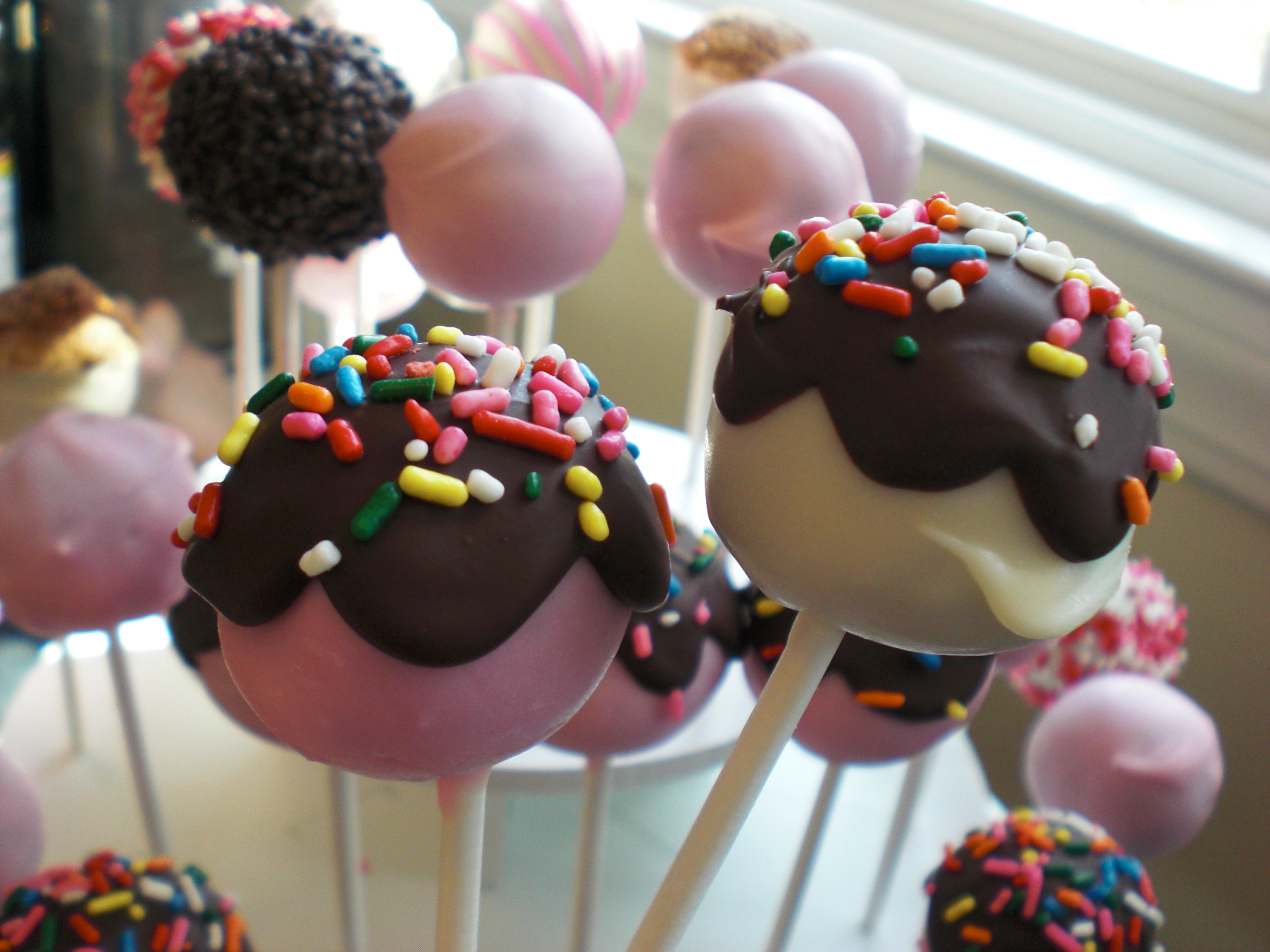 What’s better than cake on a stick? Cake pops are made out of cake, mixed with frosting and dipped in melted chocolate. Cake Pops are fully cooked and fun for people of all ages! Cake Pops can be designed and decorated to fit any occasion, including birthdays, weddings and celebrations!
